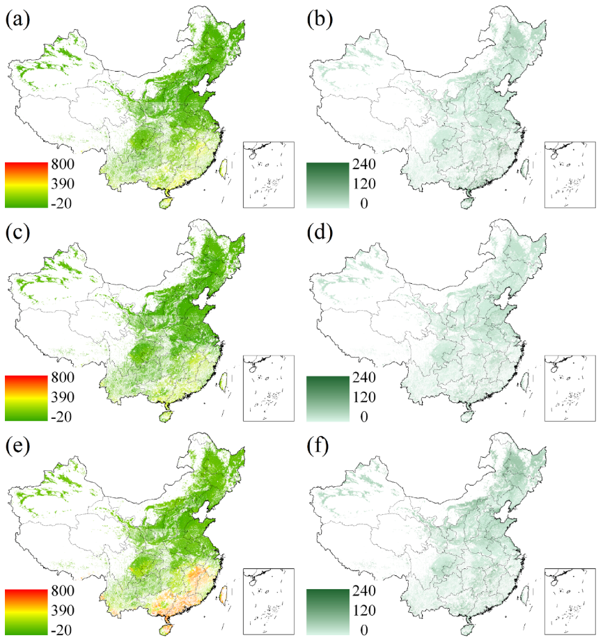 研究发现(2):土壤POC、MAOC和SOC固碳效率空间分布表现为“南高北低”。这和我国南方区域的热带/温带气候区、粘质土壤、水稻土以及中等耕作强度有关(图3)。