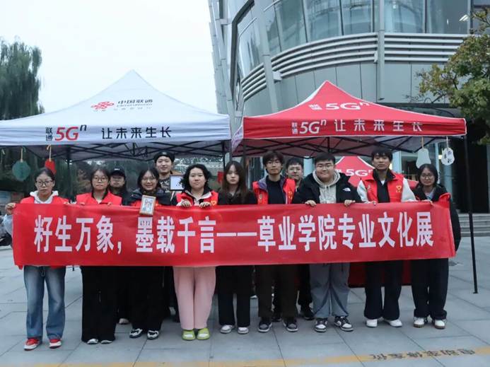 籽生万象,墨载千言。10月22日下午3点,草业学院在谷园门口举办了专业文化展。学院党委书记李云峰,学院分团委副书记王泽伟、解懿妮,新生辅导员尉小洁莅临现场参观,2025级全体新生参加了此次活动。